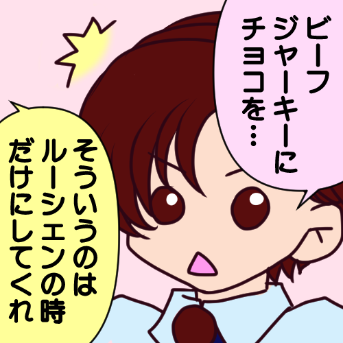 クソ忙しい2月のバレンタインデーに珍しく早く帰れたので何か描こうと思ったのですが、描こうと思っていたバレンタインネタを潮先生の「ビーフジャーキーが好き」でフッ飛ばされました…wということで、ビーフジャーキーバレンタインとホワイトデーです。ビーフジャーキー美味しいよね!w