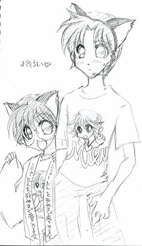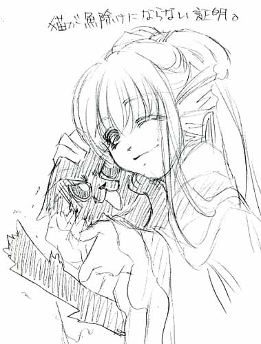 恋メタらくがき シナリオ「恋はメタモル☆マジック」のらくがきです。①かるろ氏に勧誘されたクルムさん②魚の鰭インカムしかなかったミケさん③猫を置いといても魚除けになりませんよ絵。むしろ猫が怖がっているw もどる