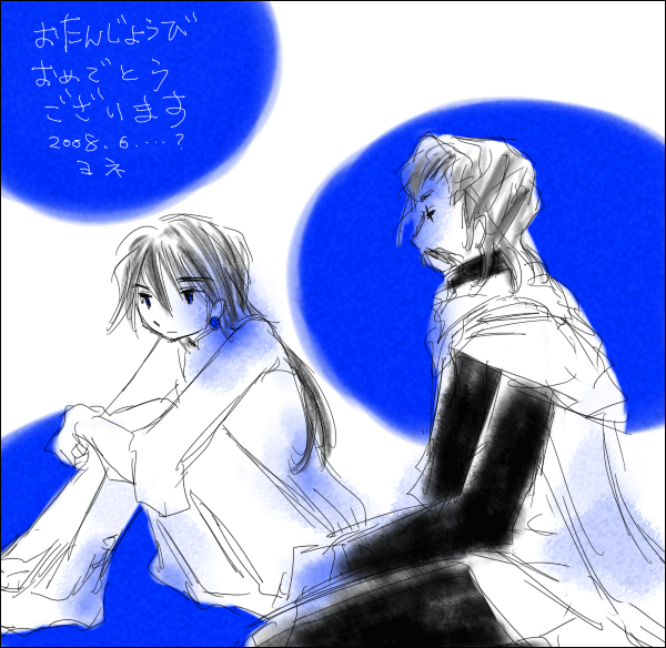 ヨネさんがお誕生日プレゼントに何か描いてくれるというので、 「夢落つ谷」のラキちゃんと想い人のオズさんを描いてもらいましたv